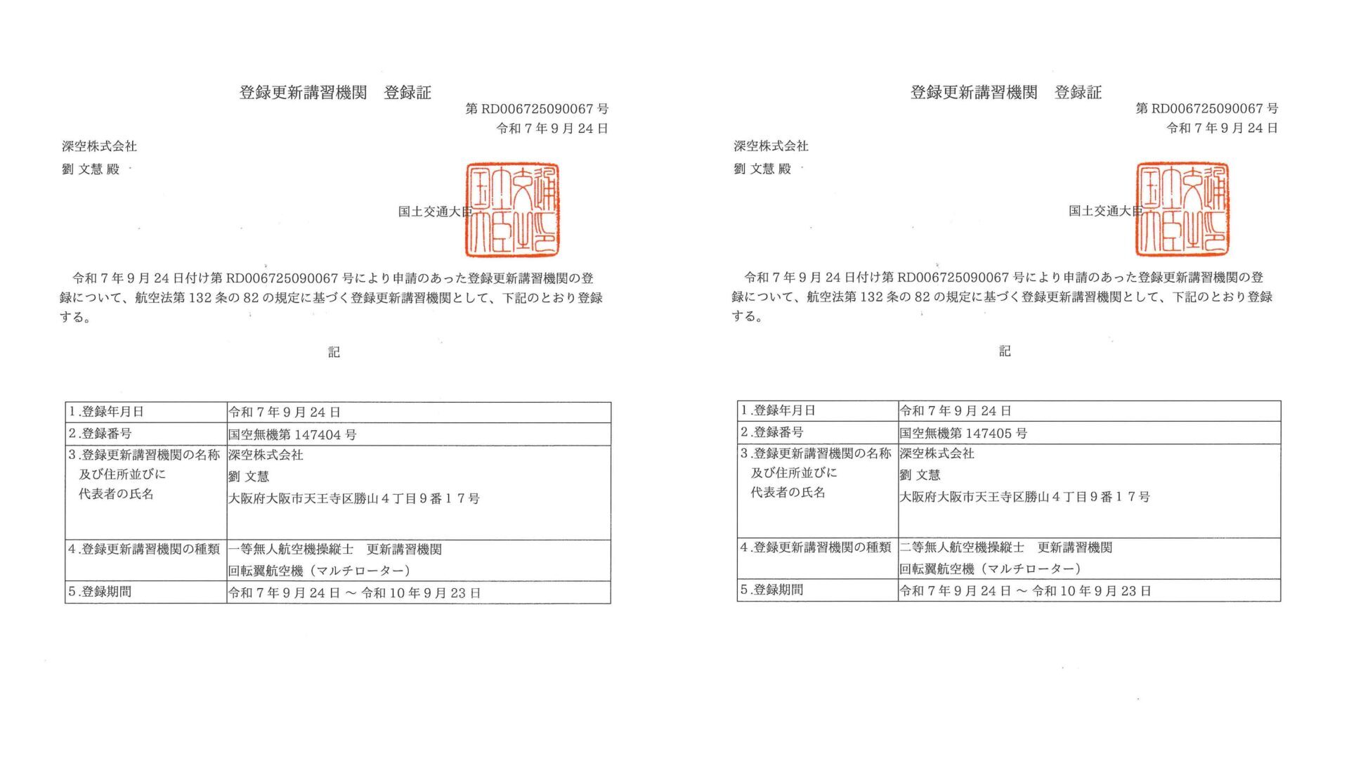 深空株式会社では更新講習機関としての認可を受けたことで、一等更新コース、二等更新コースをご用意しております。
